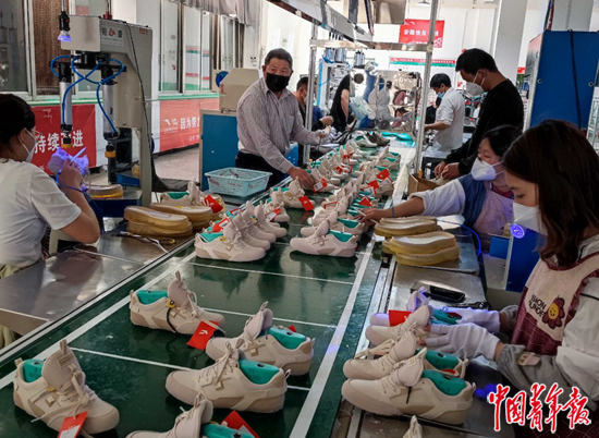 莆田一家鞋厂的工人正在生产晋江某品牌委托代工的运动鞋。 中青报.中青网记者 陈强/摄