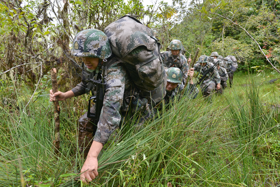 近日,经过4天的艰难跋涉,西藏军区“墨脱戍边模范营”的巡逻官兵又一次登上墨脱某山口。站在这条没有界碑、人迹罕至的边防线上,他们手握钢枪,面向国旗庄严宣誓:“我站立的地方是中国,我用生命捍卫守护。”