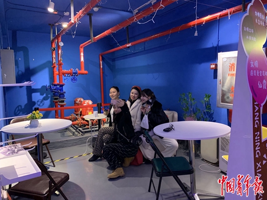 来访者在休息区自拍。中青报·中青网记者 魏其濛/摄