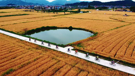 5月15日,浙江杭州萧山横一村绿道上的骑行者。 张勇供图