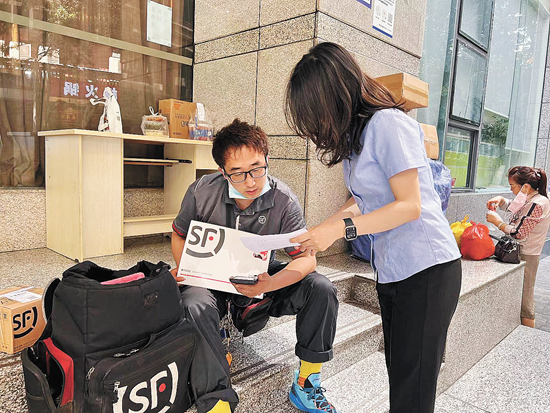 中国人寿寿险重庆分公司工作人员向快递员推荐专属商业养老保险