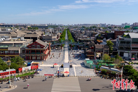 7月15日,在北京中轴线重要节点建筑箭楼上,从三层窗户南望。中青报·中青网记者 李隽辉/摄