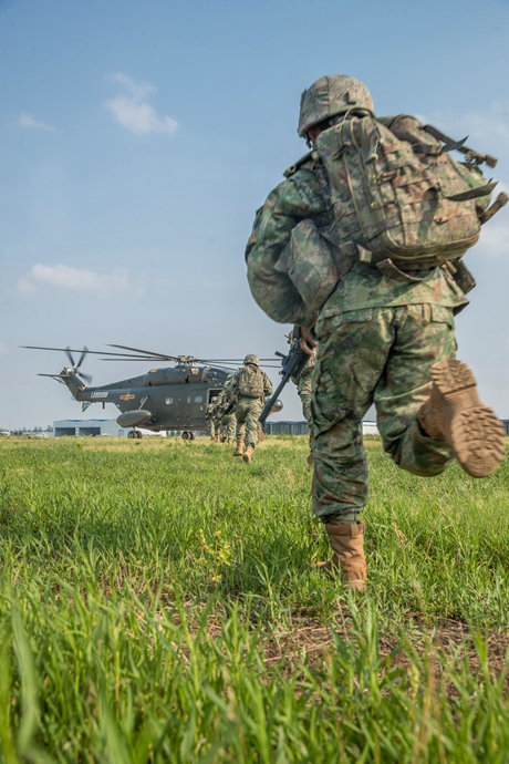 苏北某演训场,第71集团军某合成旅联合陆航部队组织的一场机降综合演练中,人员迅速登机。周士钰/摄