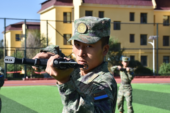 近日,西藏军区某旅换装21迷彩作训服,一名女兵在战位敬礼报告。苏毅彬/摄