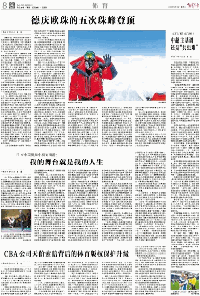 德庆欧珠的五次珠峰登顶