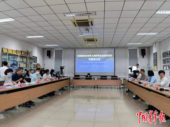 6月22日,北京青少年法律援助与研究中心召开“全国首批未成年人保护类示范性社会组织培育项目”专题研讨会,向专家、媒体介绍项目的成效及进展。中青报·中青网记者 刘言/摄