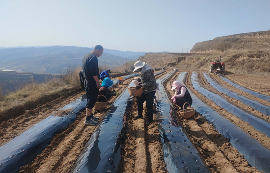 去年秋天旋耕整地。今年4月,王春国从山东种苗繁育基地调运优质丹参种苗送到庄浪,并远程视频指导。王建鹏与村里中药材种植大户韩跟虎一起下地,全部采用现代化种植技术,计划着将来也要机械化采收,就是为了最大限度地保证药材品质,同时降低人工成本。
