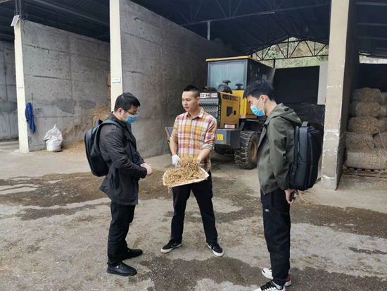 杨杰(中)与专家团队在研究智慧牛场。受访者供图