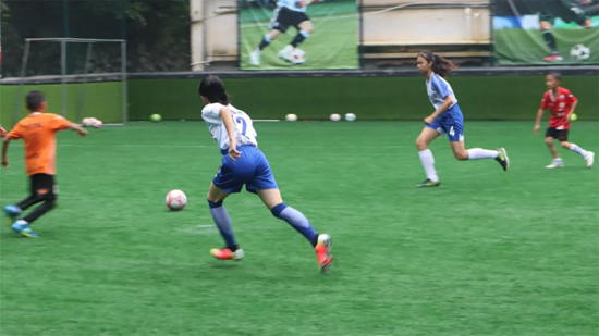 在广东灌新小学读三年级的朱钰橦刚入学就开始踢球,“我爸爸说不要踢球了吧,但是拦不住我。”小小的女孩看得懂队友相处中的细节。“下大雨没有伞,她们会给我撑伞;有零食大家一起吃;如果你摔伤了,大家就不管球了,会先来管你。”