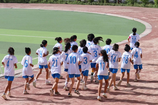 云南省曲靖市宣威靖外明德小学的女足队员也可以换下一二十元的球鞋,“追风计划”配发的更专业的足球鞋可以起到更好的保护作用。学校还自己组织了对抗赛,每天分为不同年龄段进行比赛,名曰“牛奶杯”——参赛的孩子都可以获得一罐牛奶。