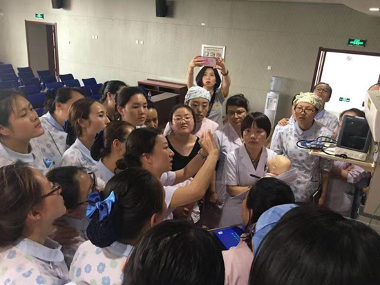 2018年5-6月,北大医院儿科副主任医师茹喜芳在宁夏儿童医院进行新生儿复苏培训。茹喜芳说,当地医生此前接受的主要是理论培训,而北大医院的培训课程还有模拟演练。培训当天所选的病例和场景也是学员们提前不知道的,学员们进行的复苏会让“病例”产生不同的结果,类似的实战演练让“学员们的学习热情特别高涨”。受访者供图