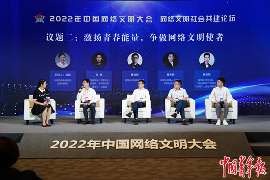 与会嘉宾围绕“激扬青春能量,争做网络文明使者”开展对话交流。中青报·中青网记者 李华锡/摄