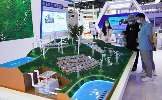9月3日,观众在国家会议中心了解水风光储多能互补绿色能源技术。