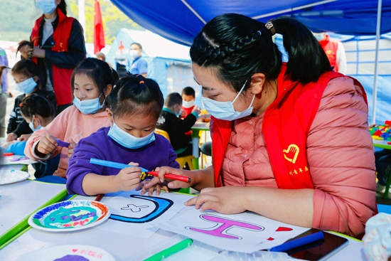 数据显示,目前在居民集中的灾区安置点已建立“青青儿童乐园”7个、正在筹建9个,当地团组织已组织专业志愿者提供亲情陪伴、快乐课堂、心理疏导等服务,累计服务儿童900余人次。