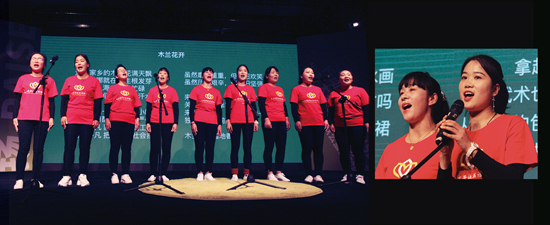“木兰花开”的姐妹们在唱自己的原创歌曲。 丁沁/摄