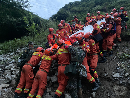 几乎同一时间,四川省森林消防总队阿坝支队副支队长李建军带领着43人的救援队伍,已经从5公里外的得妥镇出发,朝湾东村赶来。他们是在当地村民的带领下,乘橡皮艇从水路进入的,原本通往湾东村的公路被摧毁,而水路中不时也有山体坠入。半个多小时后,他们抵达湾东村外,改徒步方式继续进山救援。