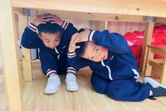 2021年3月29日,安特幼儿园开展关于地震应急演练活动。 受访者供图