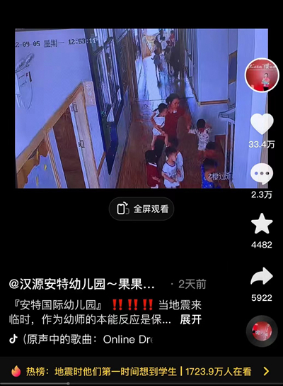 韩越相信,如果没有之前无数次的演练、复盘、优化,就不会有9月5日地震发生时幼儿园“教科书式的撤离”:监控视频里,所有的物体都在抖动,而老师在有序引导孩子跑向空旷地带。