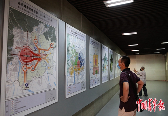 9月14日,北京市规划展览馆,市民在观看北京城市总体规划(2016年-2035年)系列图表。当日,“迈向中华民族伟大复兴的大国首都——《北京城市总体规划(2016年-2035年)》实施成果展(2021年版)”在北京市规划展览馆正式面向公众开放。据介绍,《北京城市总体规划(2016年-2035年)》是新中国成立以来北京的第七版城市总体规划。此次展览集中展示了北京城市总体规划实施第一阶段的主要成果及下一阶段重点目标任务,鼓励社会公众共同监督规划实施情况,共享发展成果,共建美丽家园。 中青报·中青网记者 陈剑/摄