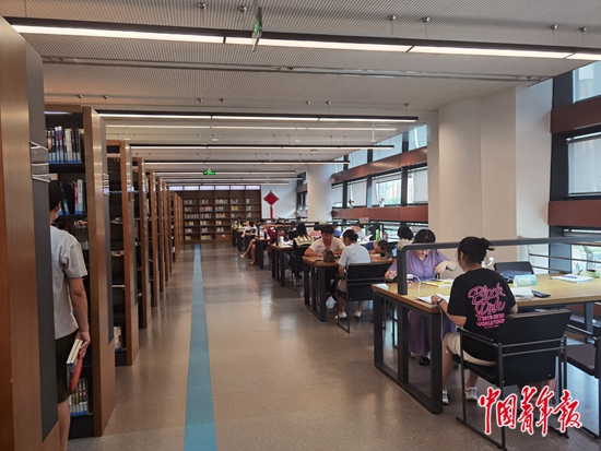 浙江省嘉善县在推进青年发展型城市建设中,注重打造青年人喜爱的场景,图为该县县城藏书30万册的图书馆里,很多青少年埋头阅读。 中青报·中青网记者 蒋雨彤/摄