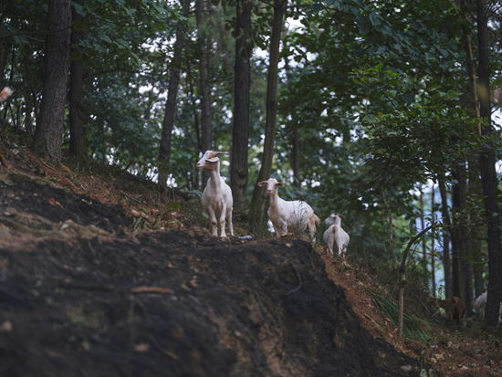 8月28日,四川省华蓥市,山火被扑灭后,一群羊突然出现在消防员面前,消防员与几只羊持续对视了两分钟。