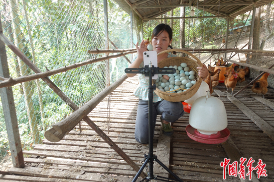 青年主播杨云在大山里直播销售当地绿壳鸡蛋,6年来,她将几十万斤农特产品销往全国。