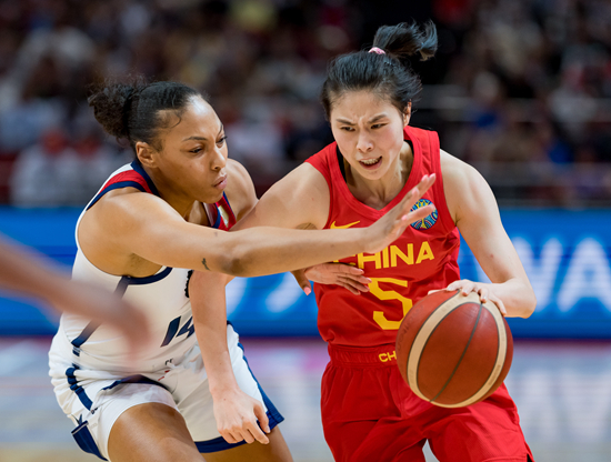 9月24日,中国队对阵美国队,王思雨持球突破。视觉中国供图