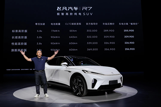9月27日,“极智高阶纯电SUV”飞凡R7正式上市,共推出4款车型,官方零售价30.25万元起。在此价格基础上,年内交付的飞凡R7全系车型,将享1.26万元的新能源国家补贴,补贴后价格为28.99万元起。