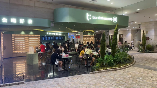 10月8日,记者来到位于北京朝阳大悦城的新中式茶馆“tea statement”。长假后的第一个工作日,店里坐满了消费者。在这里,消费者不仅可以选择花香白牡丹、秋采鸭屎香、安吉白茶等小众纯茶,也可以品尝到手打柠檬茶等新颖茶饮。如果喜欢某一款茶,还可以在零售区选取同款茶叶带走。