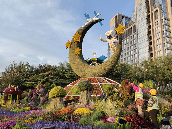 陈游2009年刚到公司工作时,赶上了新中国成立60周年的庆祝活动,并参与每年国庆长安街花坛筹备工作至今。“我们也在不断探索新工艺、新材料和新技术,例如开发新的花卉品种、改良填充基质、节约泥炭用量,用创新推动可持续发展。”