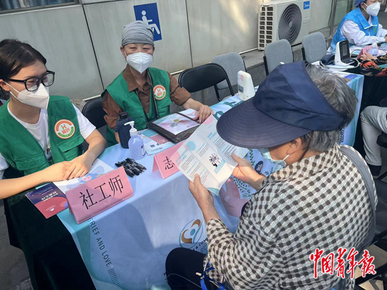和平里社区卫生服务中心,工作人员向居民普及安宁缓和医疗理念。