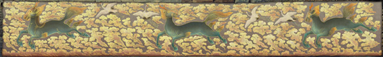 石雕壁画示意图:每组为一匹海马和两只仙鹤环以祥云组成。国家文物局供图
