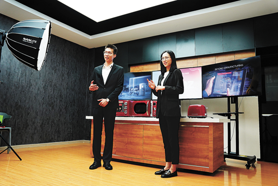 本届广交会,格兰仕工作人员通过直播,把新产品介绍给海内外采购商。受访者供图