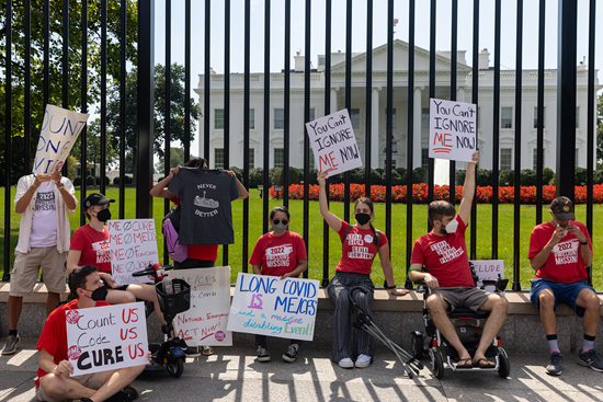 9月19日,美国首都华盛顿,出现“长新冠”后遗症的民众在白宫外抗议拜登宣称“美国疫情结束”的言论。视觉中国供图