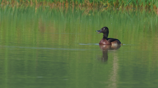 “呆萌鸭”学名青头潜鸭,因雄鸭头颈部有墨绿色金属光泽而得名,是国家一级保护动物、全球极度濒危物种。