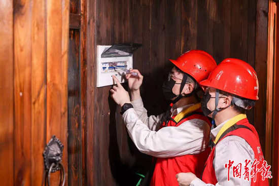 队员在中共湖南省委旧址开展线路清查和义务维修。中青报·中青网记者 洪克非/摄