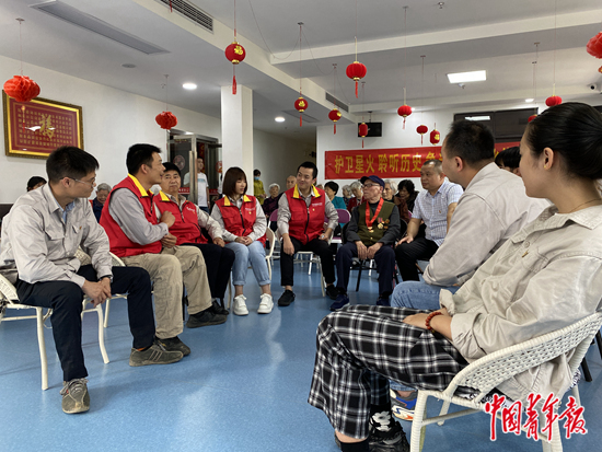 护卫队员看望抗战老兵并聆听红色故事。