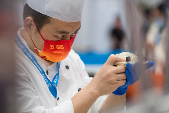 11月17日,参赛选手在西式烹调项目比赛中。当日,湖北省第一届职业技能大赛在武汉国际博览中心举行。来自90余家企业、院校的400余名选手同台竞技,参加3D数字游戏艺术、机电一体化、信息网络布线、机器人系统集成等多项技能的比拼。新华社记者 伍志尊/摄