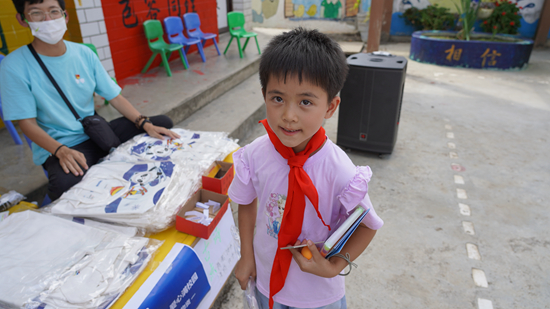 今年8月底,在木杉小学举办的一场公益活动上,一名学生拿着刚用“校园币”兑换的奖品。友成企业家基金会供图