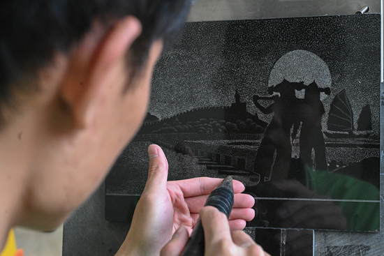 11月20日,听障学生在泉州市特殊教育学校听障职教大楼里上影雕课。
