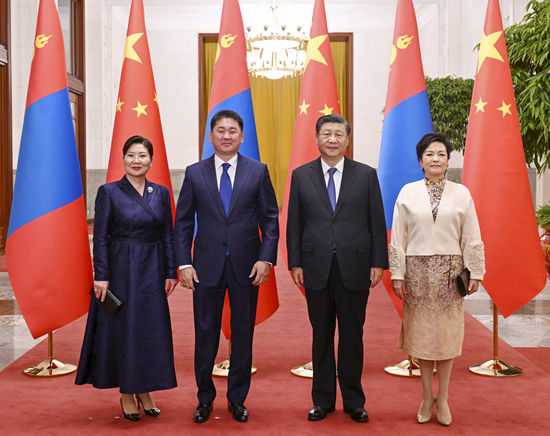 双方发表《中华人民共和国和蒙古国关于新时代推进全面战略伙伴关系的联合声明》,一致同意携手推进现代化建设,朝着共建和平共处、守望相助、合作共赢的两国命运共同体方向作出努力。