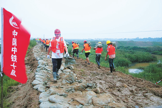 抗洪一线的青年突击队。中铁十局三建公司宣传部供图