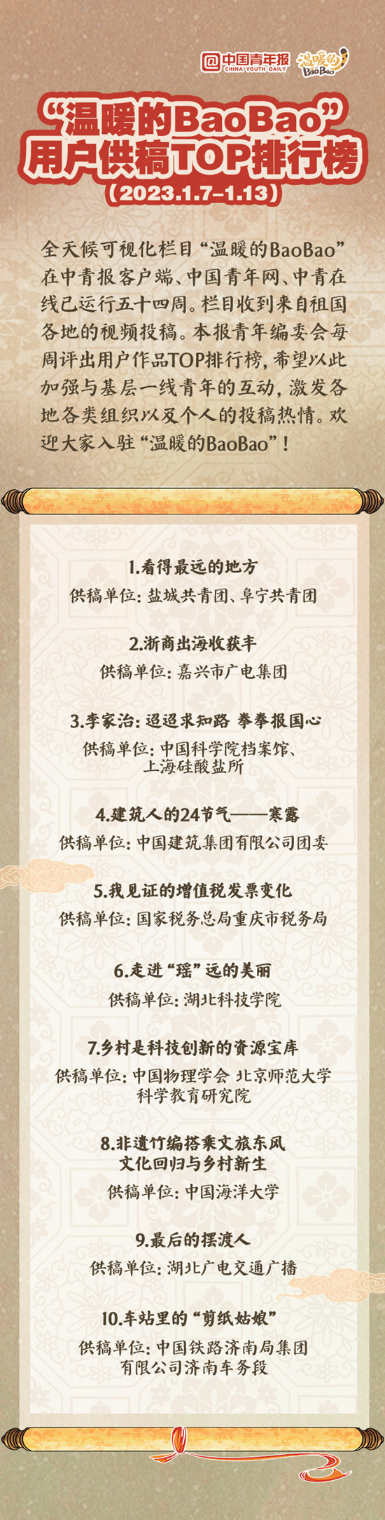 “温暖的BaoBao”用户供稿TOP排行榜(2023.1.7-1.13)