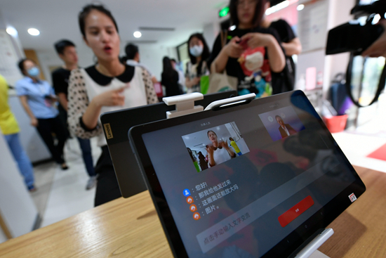 2021年6月3日,杭州手语无障碍公共服务平台在拱墅区天水街道戒坛寺巷社区服务中心正式上线。视觉中国供图(资料图片)