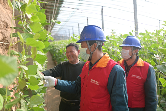 近日,国网山东宁津县供电公司青年志愿者前往柴胡店镇蔬菜大棚种植基地,协助客户排查安全用电隐患,保障乡村丰收用电和春节“菜篮子”充足供应。许保琨/摄
