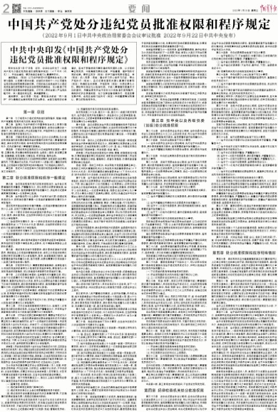 中共中央印发《中国共产党处分违纪党员批准权限和程序规定》