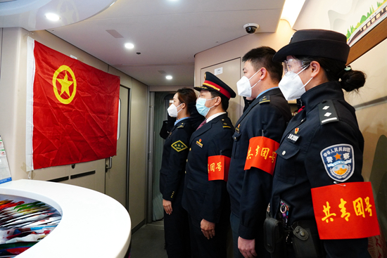 周超敏介绍,“共青团号”值乘人员都是从各单位挑选出的业务能力突出、工作标准规范的团员青年,“值乘期间,我们都统一佩戴团徽、亮明身份”。
