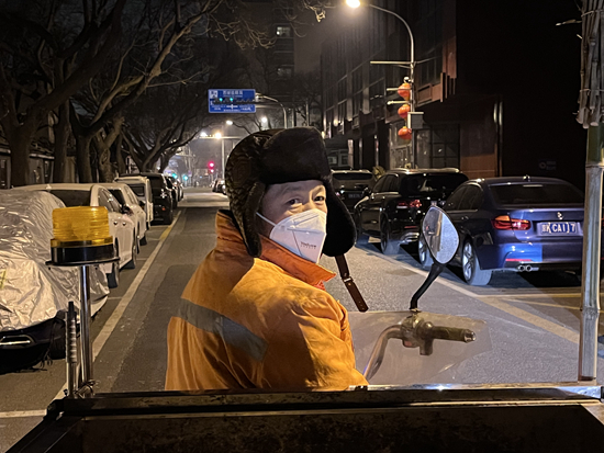1月6日,凌晨4点,气温达到零下8摄氏度,45岁的清洁工张卫民师傅像平时一样开始了一天的工作。