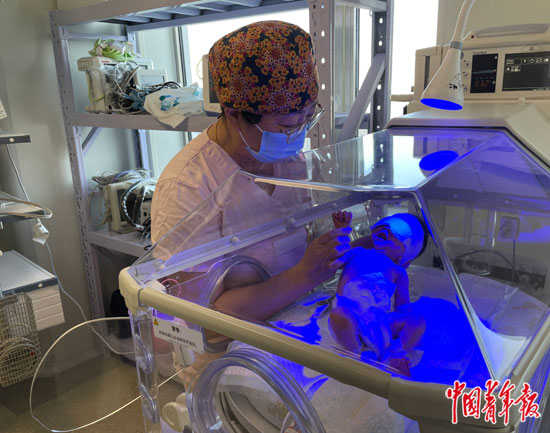 儿科病房,护士吴建英正在护理一个照蓝光的婴儿。吴建英在儿科已经工作了38年,今年即将退休,这是她最后一次在春节假期值班。过去的38年,她几乎每个春节假期都会值2~3天的班。对于众多像吴建英这样的医护人员,春节假期值班是他们工作的常态。