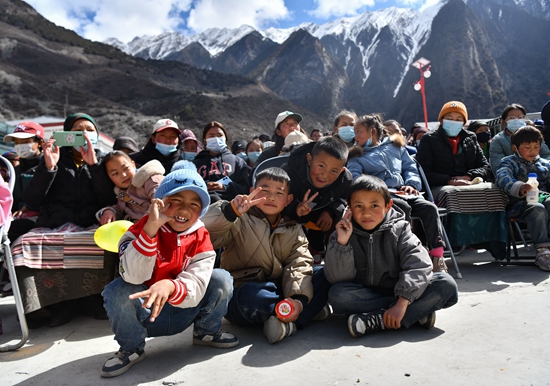 当日,西藏山南市隆子县艺术团来到隆子县斗玉珞巴民族乡绕让搬迁安置点开展迎接藏历新年文艺演出。据悉,该安置点的群众于2023年1月上旬完成搬迁入住,他们将在新家迎接即将到来的藏历新年。新华社记者 晋美多吉/摄